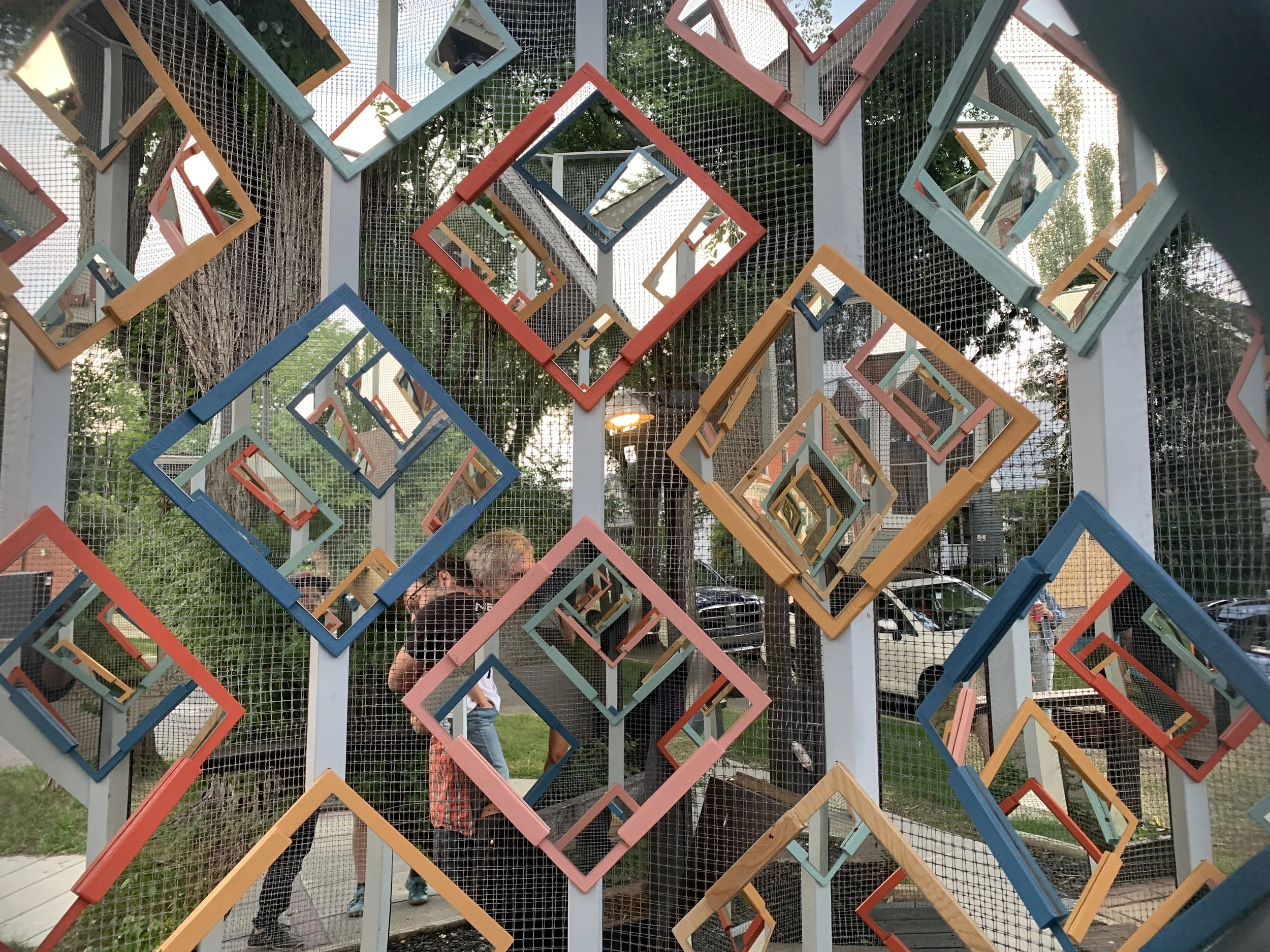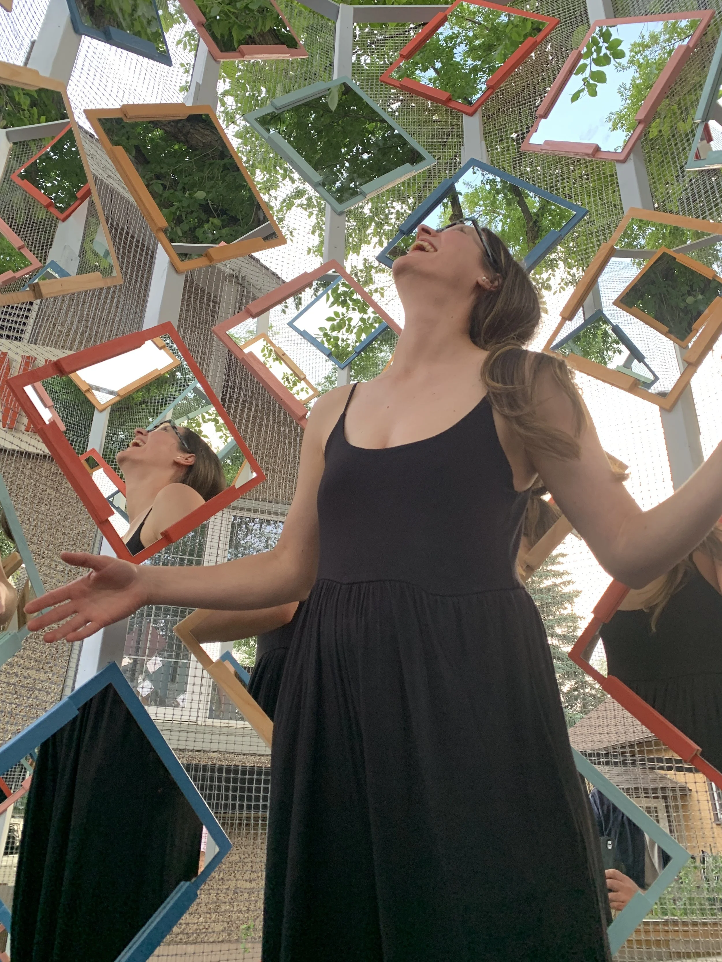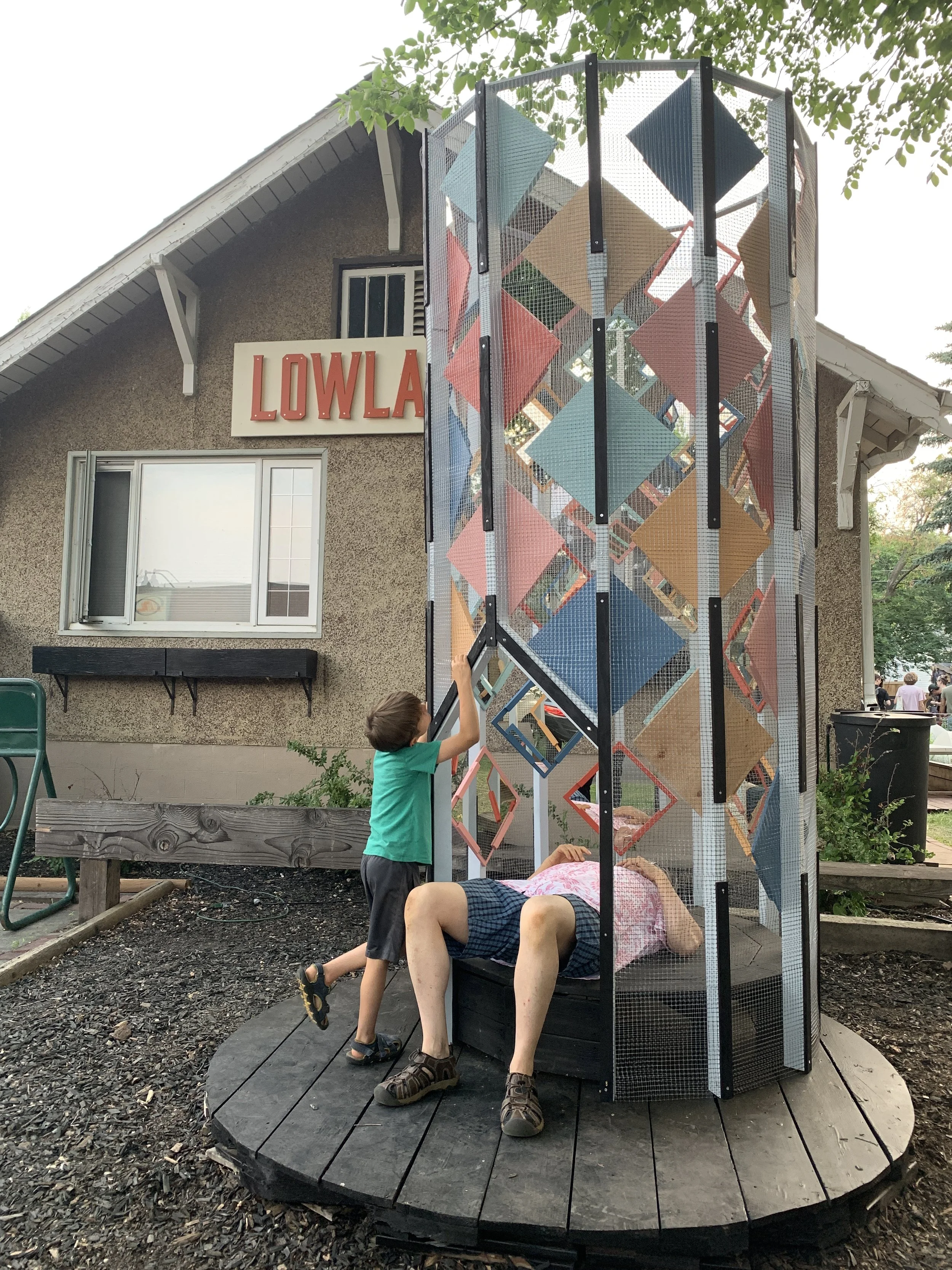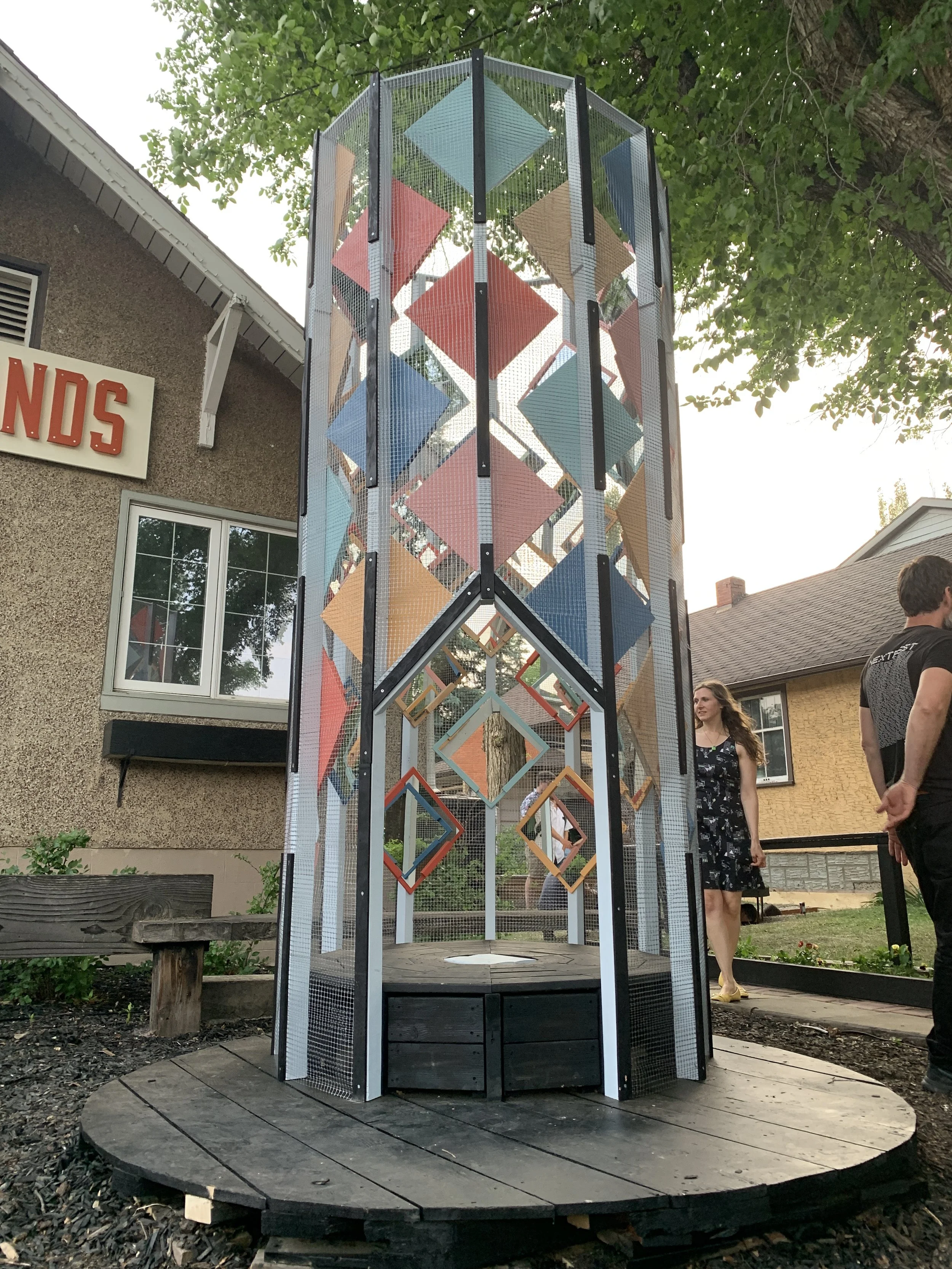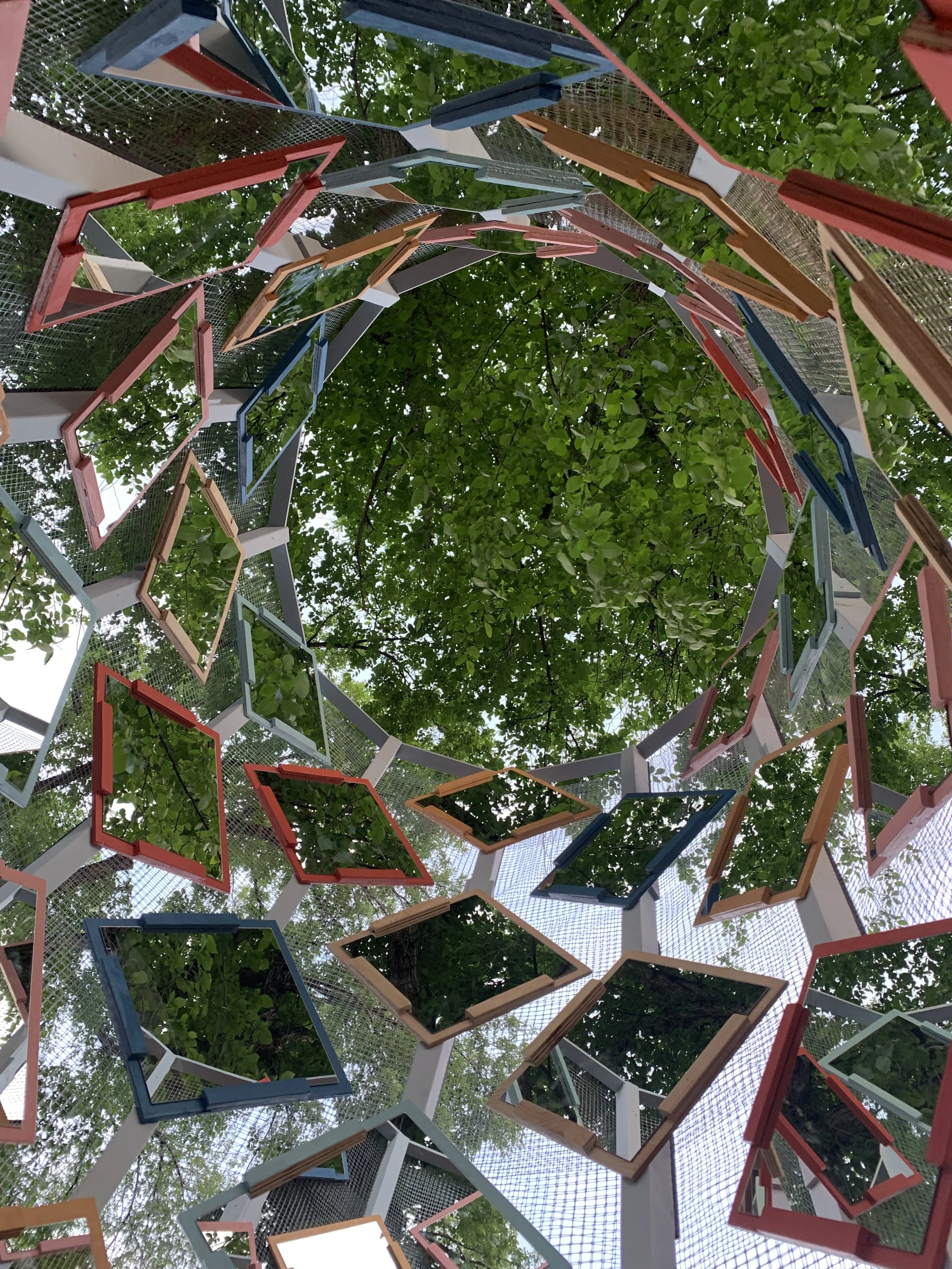 A secret hideout doubling as an inhabitable pseudo-kaleidoscopic infinity mirror, Sky Saw plays in the experiential differences between interior and exterior, earth and sky, magic and modernism. Are you in or out? Subject or object? Are the heavens above, below, or way out yonder?